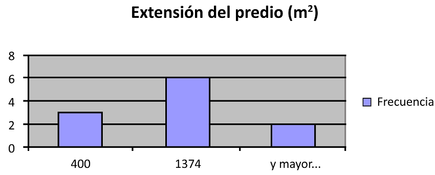 Las fuentes de ingresos identificadas, en relación con la reducción de esfuerzo en el huerto, coinciden con lo reportado por Salazar-Barrientos y Magaña (2013) para una comunidad en el estado de Yucatán. En cuanto a la propiedad de los predios estudiados, se registró tanto la modalidad privada como la ejidal. La edad del huerto -calculada por sus propietarios- es de más de 25 años, lo que coincide con la presencia de árboles maduros. La extensión de los predios fue entre 400 y 2700 m2 (Figura 8), lo cual es muy similar a los datos de Caballero (1992).