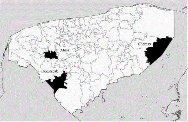 Las tres comunidades rurales del estado de Yucatán consideradas en el presente estudio fueron seleccionadas por su diferente actividad productiva, entre las que destacan la milpera de auto-subsistencia, ex henequenera y la frutícola comercial, esto con el fin de contrastar el análisis entre comunidades. Asimismo, éstas debían cumplir los siguientes requisitos: primero, que la mayoría de las familias tengan como lengua materna el maya; segundo, que cuenten con menos de 2500 habitantes y más de 100 familias, para que la muestra sea representativa y, tercero que presenten según las estadísticas oficiales un grado de marginación. La información se recolectó durante los meses de abril de 2015 a julio de 2016.