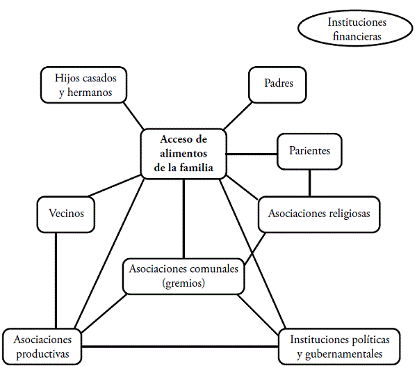 En cuanto a las relaciones observadas fuera de la familia en las tres comunidades, éstas ocurren principalmente entre vecinos, con quienes se mantiene una relación estrecha. Por ejemplo, en lo que respecta a la adquisición de alimentos, se observó que algunos productos que se obtienen del traspatio se regalan o venden a precios muy bajos entre vecinos, o se fían. Así mismo, se identificó que varias personas obtienen mercancías en fiado de las tiendas circunvecinas bajo palabra y, en cuanto disponen de dinero en efectivo, ya sea de los apoyos gubernamentales, venta de cosechas, salarios o remesas liquidan la deuda.