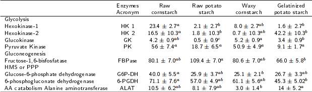 Gluconeogenesis is a preferred energy route for fish unlike mammals, using amino acid as substrate to obtain energy precursors: regulatory enzymes (FBPase) responsible to produce glucose de novo, from precursors such as lactate, amino acids, glycerol and fructose, gave an indication whether fish took substrates from protein as energy source. FBPase decrease in fish receiving diets containing raw or waxy cornstarch while glycolysis route being active. In this case, rainbow trout fed raw cornstarch increased enzymes of pentose’s pathway (G6P-DH and 6-PGDH), favoring a source of NADPH (Hemre et al. 2001). As for glycolysis, fish fed raw potato starch produced a low GK activity, suggesting poor glucose utilization.
