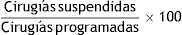 De acuerdo con la definición operacional de «cirugía suspendida» expuesta en párrafos anteriores, las tasas de suspensión de cirugías se calcularon como porcentaje de acuerdo con la siguiente fórmula, utilizada previamente en el trabajo de Machado-Landim et al.15: