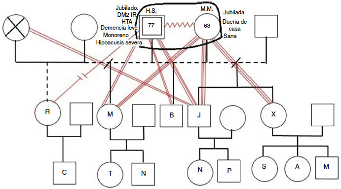 Los primeros se encuentran asociados a una mayor morbimortalidad9; respecto a los factores de riesgo sociales, los principales se relacionan con el entorno de la vivienda, al ser considerada una población peligrosa por motivos de narcotráfico y delincuencia, igualmente, la baja relación de la familia con sus vecinos. A nivel personal, en doña M.M. destaca la carga, manifestada en el test de carga del cuidador aplicado (tabla 1) en el hecho de ser la encargada de administrar los medicamentos y preparar la comida, además de las dificultades en la comunicación; todo esto implica un desgaste que termina afectando a ambos. En don H.S., la situación principal es su estado de salud. Como pareja no realizan actividades recreativas que los ayuden a enfrentar los cambios de esta etapa de la vida, se limitan principalmente a la rutina.