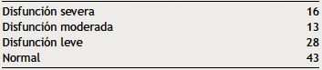 Como se observa en la tabla 3, poco menos de la mitad de los pacientes presentan una percepción de funcionalidad familiar normal, mientras que el 57% restante tienen una percepción de disfuncionalidad familiar, la disfuncionalidad leve fue la que predomina en esta área con 28 pacientes.