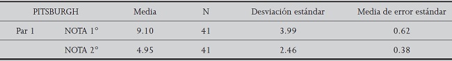En la Tabla 2 se observa que el puntaje de la escala ICSP desciende en la muestra luego de la intervención, de una media de 9.10 a 4.95, con una desviación estándar de ±2.46, situación que indica mejoría en la calidad del sueño. Estas diferencias son estadísticamente significativas; conforme a esto no se puede aceptar la H0, en cambio es posible afirmar que la calidad del sueño aumenta luego de la intervención.
