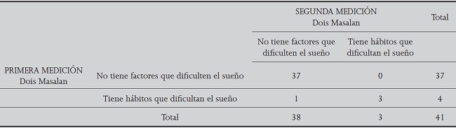 En cuanto a los hábitos del sueño no se observaron cambios significativos, a excepción del manejo de la sintomatología diurna cuyo resultado alcanzó significancia estadística, el cual puede estar relacionado con el conocimiento adquirido y aplicado sobre higiene del sueño. En relación con los hábitos que no determinaron cambios significativos, estos se relacionan a estados de estrés e irritabilidad que cada persona maneja en su vida cotidiana, lo que le impide cumplir con directrices para el manejo de las dimensiones mencionadas 23.