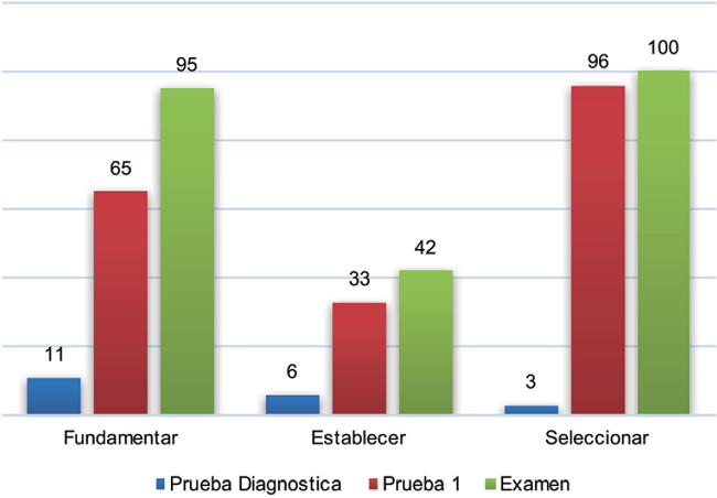 De este modo, se pudo graficar el progreso del grupo con relación al desarrollo de las habilidades del PC y SE (Gráfico 1). Se observa avance en el desarrollo de las habilidades, en relación con el PC en los resultados obtenidos por los alumnos en el examen, el 42% de los estudiantes logran establecer la solución correcta al problema del caso, el 95% fundamenta la solución correcta.