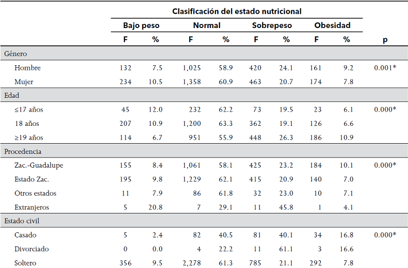 Estado nutricional, factores sociodemográficos y de salud en estudiantes de nuevo ingreso a la UAZ