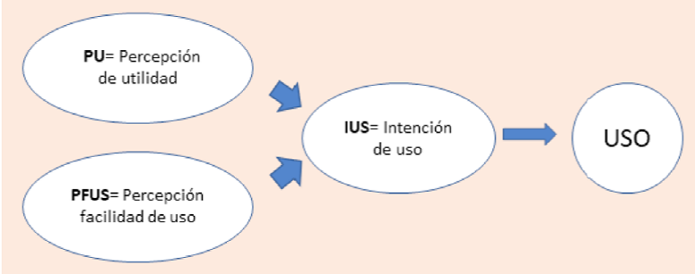 En cuanto al modelo de Aceptación Tecnológico (TAM), las variables intención de uso (IUS) y percepción de utilidad de uso (PU) son predictores directos del uso de las bases de datos.