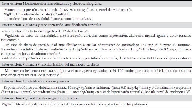 Los pacientes en postoperatorio requerirán habitualmente, de acuerdo protocolo institucional, asistencia respiratoria mecánica (AVM) de 48 a 72 horas.
