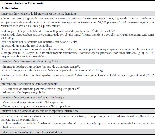 Diagnóstico 4: Riesgo de hemorragia y eventos trombóticos r/c alteración del factor plaquetario 4 por enoxaparina sódica, recuento plaquetario de 40,000 /mm3.