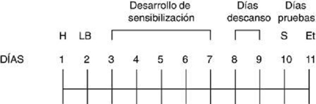 El primer día, las ratas fueron introducidas en las cajas de actividad durante 60 min (sesión de habituación). En el segundo día, las ratas recibieron una inyección ip de 1.0 ml/kg de salina; después fueron introducidas en las cajas de actividad motora durante 60 min para obtener el registro de la actividad motora (línea base). Del día 3 al 7 las ratas recibieron la administración de una inyección ip de 0.25 mg/kg de etanol y posteriormente fueron introducidas en las cajas de actividad durante 60 min para obtener el registro de la actividad motora (fase de desarrollo de la sensibilización locomotora). En el día 10 las ratas recibieron la administración de una inyección ip de 1.0 ml/kg de salina y fueron introducidas en las cajas de actividad motora para contabilizar su actividad durante 60 min, con el fin de verificar si existía actividad condicionada significativa (prueba de salina). En el día 11, las ratas recibieron la administración de una inyección ip de etanol y alguno o algunos de los compuestos a evaluar, dependiendo del experimento (prueba de la expresión de la sensibilización locomotora). Posteriormente, fueron introducidas en las cajas de actividad durante 60 min para obtener el registro de la actividad motora (Figura 1).