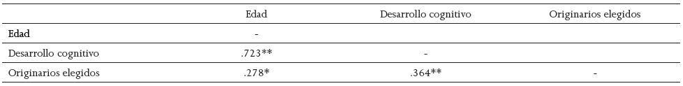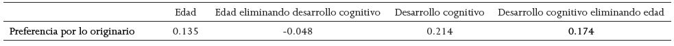 A pesar de ello, es pertinente preguntarnos si las PE infantiles por los estímulos originarios estarían determinadas por la edad, es decir por el simple paso del tiempo, o porque en dicho transcurso acontecieron circunstancias como la adquisición, como vimos, de ciertas capacidades cognitivas. Como puede verificarse en la Tabla 3, las correlaciones entre edad, desarrollo cognitivo y preferencias por los estímulos originarios resultaron ser altas y positivas. Entonces, ¿cuál de las dos variables, edad o desarrollo cognitivo podría relacionarse mejor con la formación de las PE en niños originarios?