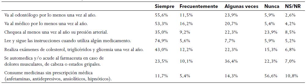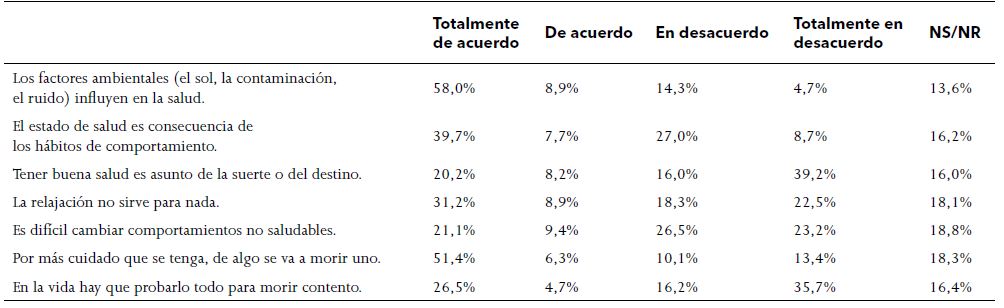 Complementariamente, frente a la posibilidad de modificar hábitos no saludables, mientras un 21,1% afirma que es altamente difícil, el 23,2% se ubica en el extremo contrario de la respuesta (es fácil cambiar hábitos no saludables). En este punto también se resalta que un 51,4% de los sujetos insiste en que a pesar de los cuidados que se generen en torno a la salud “de algo se van a morir”.