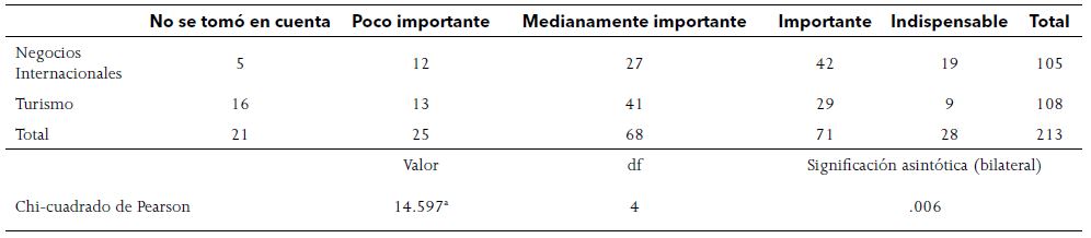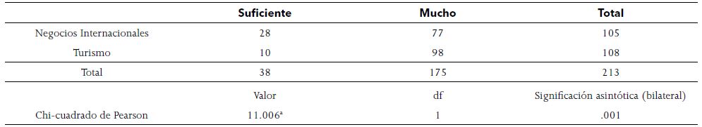 No obstante, por el sistema de créditos, las carreras de NIN y TUR comparten espacios áulicos con un mismo profesorado en aproximadamente el 45% del currículum y con el requisito del idioma inglés que se contempla necesario en su ejercicio profesional. Sin embargo, también son claras las diferencias curriculares donde destacan materias en la carrera de negocios internacionales en términos de marcos legales, logística y comercio internacional y para la carrera de turismo las materias que enfatizan en la gestión de los servicios turísticos y la cultura.