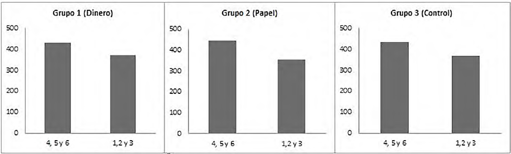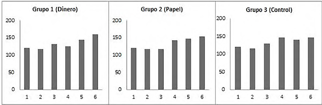 Se siguió un diseño de más de dos grupos experimentales: Grupo 1 (estimulado con dinero), Grupo 2 (estimulado con papel) y Grupo 3 (control).