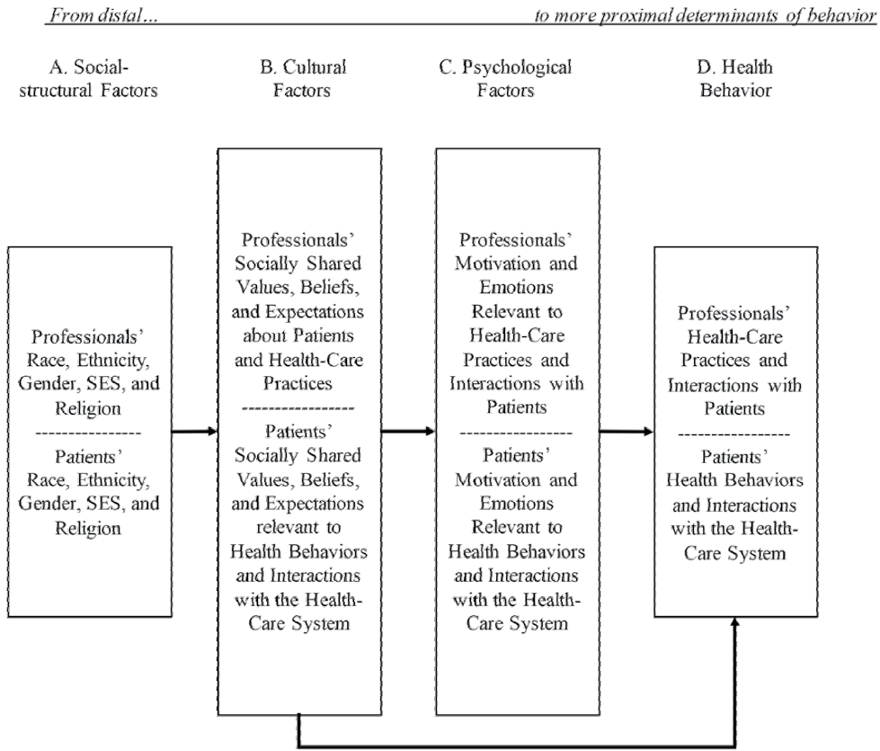 In addition to confirming the fundamental propositions of the integrative model, results highlight the important role of psychological factors, such as distress, in understanding the influence of cultural and social structural factors in health behavior and out-come. This is important from a psychological perspective, as it confirms the need to consider relevant psychological processes when investigating health behavior and outcome from a cultural perspective. According to the integrative model, culture can influence behavior directly and/or through its effect on psychological processes. When the influence of psychological factors is not considered and no direct effect of culture on behavior is observed, one may wrongly conclude that culture does not play a role in that particular behavior. Consideration of these as well as the other findings of this study can significantly improve healthcare interventions.