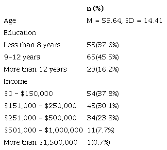 A total of 400 T2DM patients from La Araucania region of Chile participated in the larger research project. Inclusion criteria for that larger study included a minimum age of 18, diagnosis of T2DM for at least one year, and not dependent on insulin. For the purpose of the present study, additional inclusion criteria involved at least one reported experience of past healthcare mistreatment, as measured by the Healthcare Mistreatment Scale (Flynn et al., 2015). As discussed earlier, our previous work examined the impact of healthcare discrimination on indigenous Chilean (Mapuche) T2DM patient outcomes (Oritz et al., 2015). Hence, the focus of the present study is on mainstream Chilean T2DM patients. Of the 254 non-indigenous T2DM patients included in the larger study, 143 reported at least one experience of prior mistreatment. Demographics for the study sample are described in Table 1.