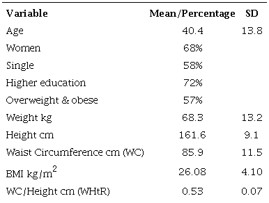 The objective of the present study was to evaluate the factor structure and reliability of TFEQ- R18 in a Mexican sample of adults representing different weight categories. We also examined associations between the TFEQ-R18 and both Body Mass Index (BMI) and Waist to Height Ratio WHtR). Both BMI and WHtR have been proven good predictors of cardio metabolic risk, with the cut-off points: BMI≥25 for overweight and ≥30 for obesity, and .5cm for Waist to Height Ratio.