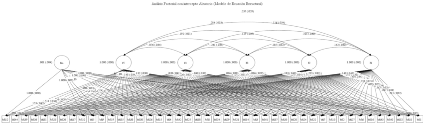 El Análisis Factorial con Intercepto Aleatorio (AFCIA) y la rotación target, son metodologías que se aplican para las variables ordinales; derivado de que lidian mejor con la distribución y por ende la variabilidad de las escalas de tipo Likert (Maydeu-Olivares & Coffman, 2006; Reise et al., 2011). Con este análisis, se busca lograr un mejor ajuste al modelo ya que, pondera cada respuesta en función del nivel de la escala. El cálculo del modelo se realizó con los índices de bondad de ajuste robustos mediante el método WLSMV en el programa Mplus7.0.