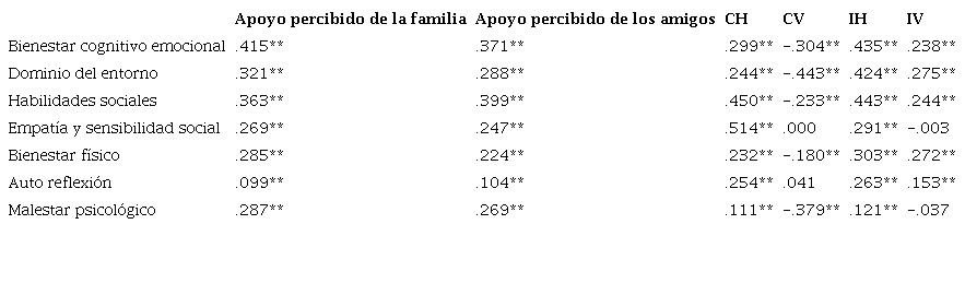 Por su parte el apoyo social percibido tanto de la familia como de los amigos se hicieron presentes en los modelos predictivos de todas las dimensiones como positivos y significativos. En el caso de las Habilidades sociales y la Empatía y sensibilidad social, el ASPF y ASPA pueden motivar a la persona a interactuar y desarrollar dichas habilidades en relaciones de reciprocidad; también podría relacionarse con los aspectos de socialización que se adquieren en la familia como el primer lugar donde se puede recibir empatía y respeto que también se fomenta en la cultura mexicana (Díaz Guerrero, 2013) y de igual manera al explicar que quienes sienten satisfechas sus necesidades emocionales en la familia y sienten vínculos seguros y afectuosos, estarán menos centrados en sus preocupaciones y podrán interesarse y ser sensibles a las necesidades de los demás (Sánchez-Queija, Oliva & Parra, 2006).