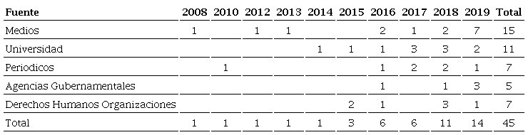 Para el análisis de la muestra se empleó el método literal y el método lógico. Con el primero, se realiza una clasificación a partir de una matriz teórica, en la que se estudian: el Tipo de Documento, el Título, el Año, la Fuente, el Núcleo Semántico y los Referentes Centrales.