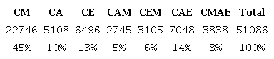 Se obtuvieron las frecuencias y porcentajes para cada una de las variables seleccionadas, de acuerdo con las categorías de Persona Cuidadora (PC) y Persona No Cuidadora (nPC) (ver Tabla 1). Las PC se identificaron directamente al responder afirmativamente al menos a una de las tres preguntas del cuestionario relativas a la calidad de cuidador(a). También se calcularon las frecuencias de los siete perfiles de cuidador(a) que se identificaron en (ver Tabla 2): sólo menores de edad (CM), sólo adultos mayores (CA), sólo enfermos crónicos (CE), adultos mayores y menores de edad (CAM), enfermos crónicos y menores de edad (CEM), adultos mayores y enfermos crónicos, (CAE) y todos (CMAE). Adicionalmente, con el objetivo de responder la pregunta de si la carga de cuidado está asociada al número del tipo de dependientes se construyó la variable de Cuidador con tres niveles: CI = PC con un solo tipo de dependiente; CII = PC con dos tipos de dependiente; y CIII = PC con los tres tipos de dependiente.