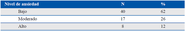 Materiales y Métodos: Estudio descriptivo correlacional de corte transversal. Se utilizó un cuestionario semiestructurado y validado internacionalmente para medir la ansiedad y el análisis estadístico de regresión múltiple.