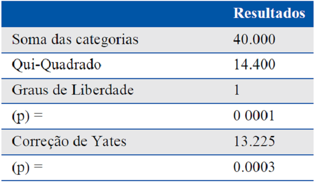 Foi feita análise descritiva com distribuição de frequências e medidas de tendência central e variabilidade (média e desvio padrão). Posteriormente, para comparação das proporções, foi utilizado o teste qui-quadrado de Pearson e nível de significância de 5%. O teste foi utilizado para fazer comparação entre os escores observados e os esperados. A correção de Yates foi realizada para uma correção de continuidade, como mostra a Tabela 1, para a variável valor dos gastos (U$).