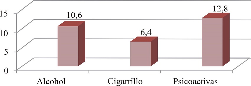En la Figura 1 se muestra el porcentaje de participantes que consumían antes del embarazo alcohol 10,6% (n=5), cigarrillo 6,4 (n= 3) y sustancias psicoactivas 12,8% (n=6).