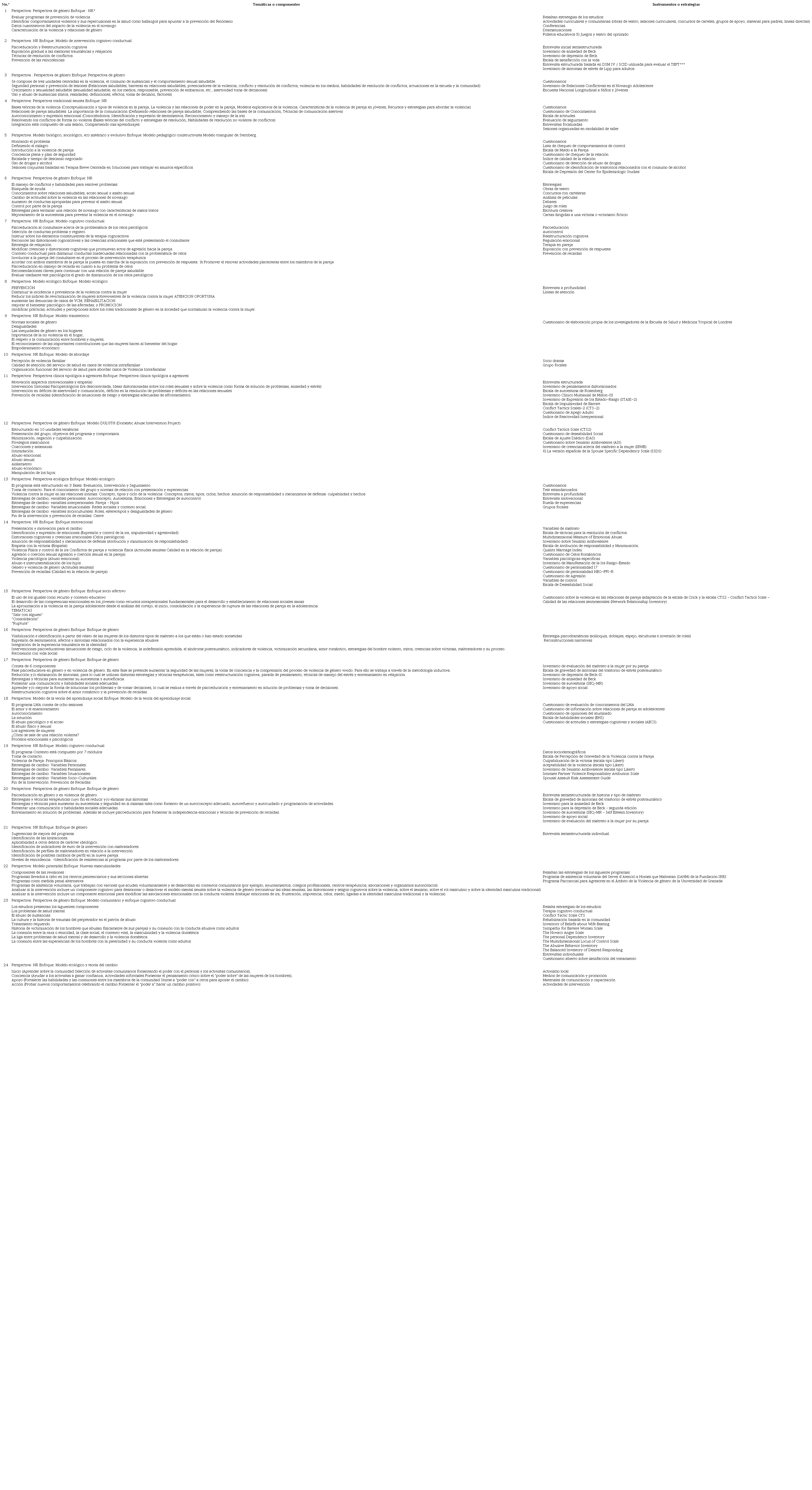 Las dimensiones que se abarcan en las intervenciones de violencia de género en relaciones de pareja, está integrado por perspectiva, enfoque, temáticas y componentes e instrumentos que se describen según los sujetos abordados, finalmente los profesionales y expertos. (Ver cuadro 2 )