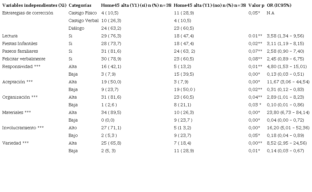 Conclusions: Educating children through dialogue, encouraging reading and participating in children’s parties, as well as having a caregiver under 35 years of age, were variables that increased the probability of high stimulation in children.