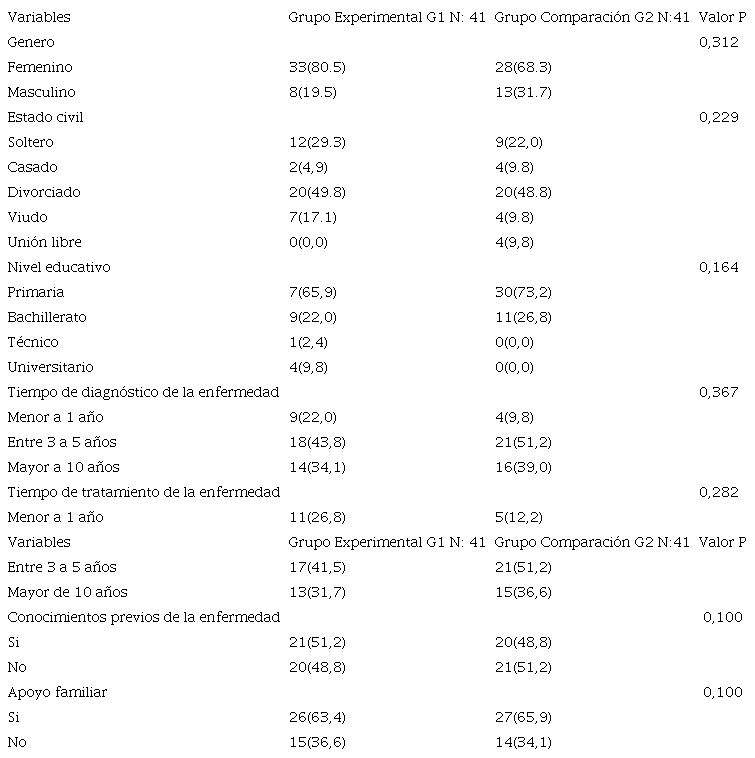 Materials and Methods: A quasi-experimental, pre- and post-intervention study was conducted with 82 adults attending the chronic patient consultation of a second-level hospital in the department of Boyacá, Colombia. Participants were randomly allocated to the experimental and comparison groups.