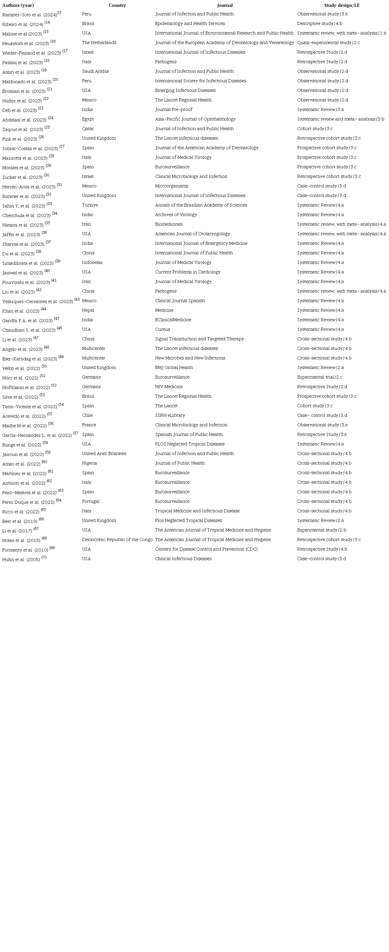 Regarding the inclusion criteria, we considered studies that addressed evidence on cases of human mpox in the world scenario and available in full text. In order to achieve a comprehensive survey of the literature and considering that human mpox is an old infection, whose repercussions are the focus of study worldwide, no time frame was set for publications. Editorials, letters to the editor, abstracts, case reports, case series, experience reports, non-systematic reviews and reflection articles were excluded.