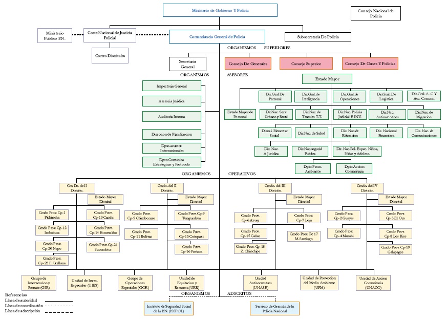 En consecuencia, lo que ha vivido Ecuador hasta el momento en materia de reforma policial es un nuevo proceso de organización de los servicios policiales en su conjunto y una reconfiguración del mando sujeto a la conducción gubernamental. En septiembre de 2012 se publicó la nueva Doctrina Policial de la República del Ecuador (Ministerio del Interior, 2012). Este nuevo documento incluye acá-pites importantes sobre la nueva identidad policial con una vocación civil y orientación comunitaria. No obstante, esta institución sigue estando orientada por los valores castrenses para una institución de más 42.000 miembros debido a su estructura piramidal y jerárquica.