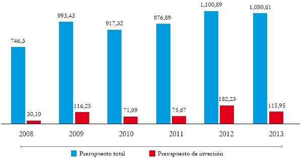 *El dato de 2013 se refiere al presupuesto codificado. Se ha juntado la información de Policía con Ministerio del Interior para fines comparativos.