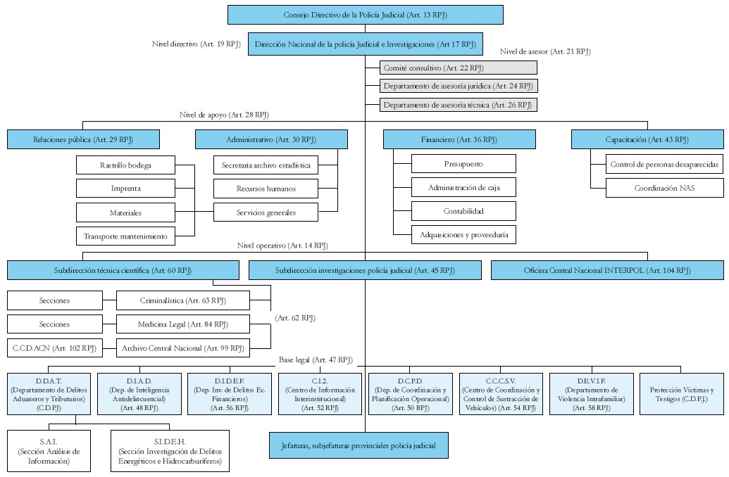 Dentro de la Policía Nacional, una de las instancias más deprimidas y abandonas ha sido sin duda la Judicial. Esta situación ha sido atribuida a la falta de inversión en esta dependencia, debido a problemas de desinterés gubernamental o irresponsabilidad de los mandos policiales en la planificación institucional. Se llegó a la situación donde el presupuesto de la Dirección Nacional de la Policía Judicial e Investigaciones se financiaba con recursos de autogestión, provenientes de la venta de especies valoradas y remate de bienes recuperados. En 2009 este presupuesto ascendió apenas a 10 millones de dólares, donde más de la mitad se utilizaba en gasto corriente y apenas un 10,2% de este monto se destinaba a inversiones.