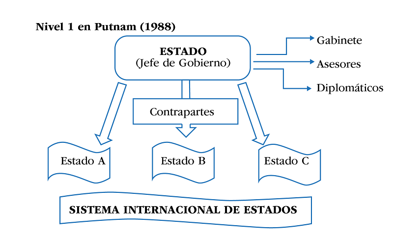 En este punto se percibe una paradoja, pues, para Putnam (1988) el nivel I, que obedece a un diálogo internacional entre gobernantes, se visualiza como un “diálogo entre Estados”, en el que la variable idiosincrática tiende a perder peso. Así mismo, aunque luzca contradictorio, la visualización se compadece con la “segunda imagen” de Waltz (1979), que se refiere al análisis de carácter sistémico, desde el cual es posible explicar comportamientos de política internacional. Sin embargo, lo meritorio en Putnam (1988) es que no analiza el comportamiento estatal, sino el de los negociadores (policy-makers) que lo representan y su vínculo con los pares de otras estructuras estatales.
