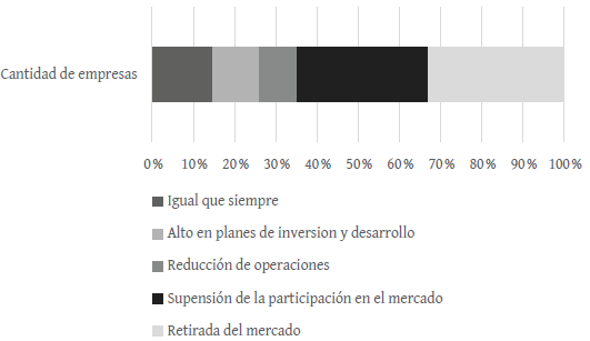 Los efectos de estas medidas se vieron profundizados por la conducta de las corporaciones occidentales. Casi mil multinacionales que operaban en Rusia tomaron medidas contra este país, más allá de lo requerido por las sanciones legales (Yale School of Management, 2023). Estas acciones (figura 6) han estado motivadas por "condena moral, preocupaciones reputaciones, y pánico" (Mulder, 2022), y ejemplifican el fenómeno de corporate statecraft (Choer Moraes & Wigell, 2020) en el contexto de la guerra en Ucrania.