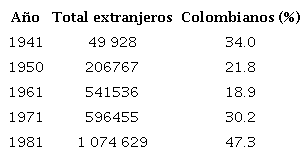 En América Latina, Venezuela ha ocupado un rol central en la recepción de migrantes (Castles et al., 2014). En la década de 1970, en Venezuela se consolidó un corredor migratorio, en el que Colombia, Perú y Ecuador se desempeñaron como países de origen (Álvarez, 2004). Entre tanto, en Colombia, el conflicto armado impulsó tendencias emigratorias a partir de la década de 1959, cuando fueron Panamá, Ecuador y Venezuela los principales destinos (Prasca, 2011). En Venezuela, los colombianos fueron el grupo más representativo de extranjeros a partir de los años setenta (Freire, 2004; Álvarez, 2007), como se resume en la tabla 1.