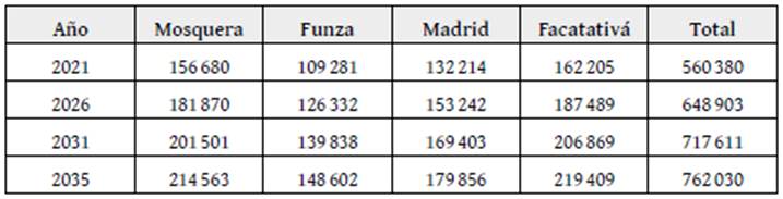 Como puede observarse en la siguiente tabla, en conjunto con otros municipios de la Provincia de Sabana Occidente, la región cuenta hoy con más de 560 mil habitantes, representando el 17,3% del total de la población del Departamento, constituyendo la zona más poblada de Cundinamarca después de Soacha; se estima que para el año 2035 la población llegue a 762 030 habitantes.
