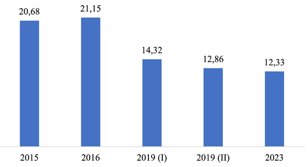 Electoralmente la coalición no le rindió mayores beneficios a Podemos en 2016, en comparación con 2015 (figura 3). La fuerza política que sí incrementó su caudal de votos fue PP, obteniendo para el Congreso de Diputados el 33,01% de los votos (Ministerio del Interior, s. f.). Esta situación lo colocó en mejor posición para acordar con Ciudadanos la formación de un gobierno bajo la presidencia de Mariano Rajoy (PP), quien sería destituido en junio de 2018 y reemplazado, luego de la moción de censura, por Pedro Sánchez (PSOE). No obstante, la imposibilidad del gobierno socialista para aprobar el presupuesto, hizo que se convocara a elecciones en abril de 2019.