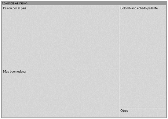 Como se puede apreciar en la figura 15, el mensaje que quedó de la campaña a los participantes fue: primero, un sentimiento de pasión por el país; segundo, que la campaña se había basado en un muy buen eslogan; y, tercero, que la campaña promovía una idea del colombiano echado pa'lante.