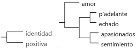 En la figura 17 se puede ver la relación discursiva de los participantes respecto a la identidad nacional. Por un lado, destaca la idea de identidad positiva en el discurso; y, por otro lado, la forma en que el amor engloba las ideas de la pasión y el ser echado pa'lante.