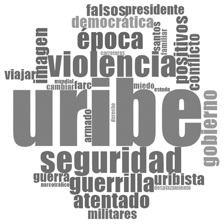 Se indagó por las principales referencias que tenían los participantes sobre los inicios de la marca país en Colombia. En la figura 2 resaltan palabras como "Uribe", "seguridad", "violencia" y "conflicto", entre otras, que denotan un contexto violento, conflictivo y peligroso.