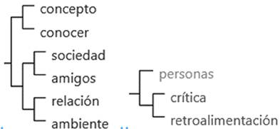 En la figura 8 se aprecia una cercanía entre los términos de "relación-ambiente" y de "sociedad-amigos", los cuales se relacionan con la idea de conocer el concepto del individuo, denotando así procesos de crítica y retroalimentación que recibe el individuo de parte de su entorno.