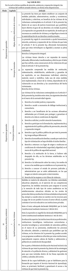 Ley 1448 de 2011. Por la cual se dictan medidas de atención, asistencia y reparación integral a las víctimas del conflicto armado interno y se dictan otras disposiciones. 10 de junio de 2011. D. O. N.° 48.096. https://www.unidadvictimas.gov.co/wp-content/uploads/2016/03/ley-1448-de-2011.pdf