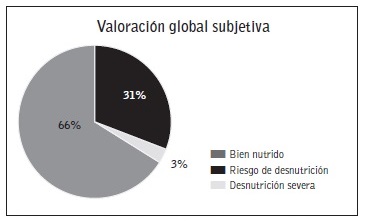 Dado que el número de pacientes que tenemos en riesgo de desnutrición es alto, sería preciso instaurar un seguimiento de los aspectos nutricionales y realizar una intervención personalizada para intentar revertir la situación actual.