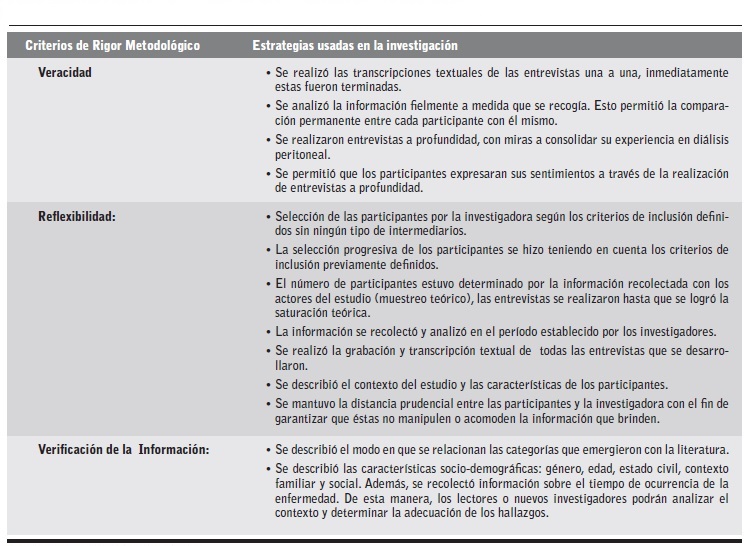 Se mantuvieron los criterios de veracidad, reflexividad y verificación de la información12. (Tabla 1)