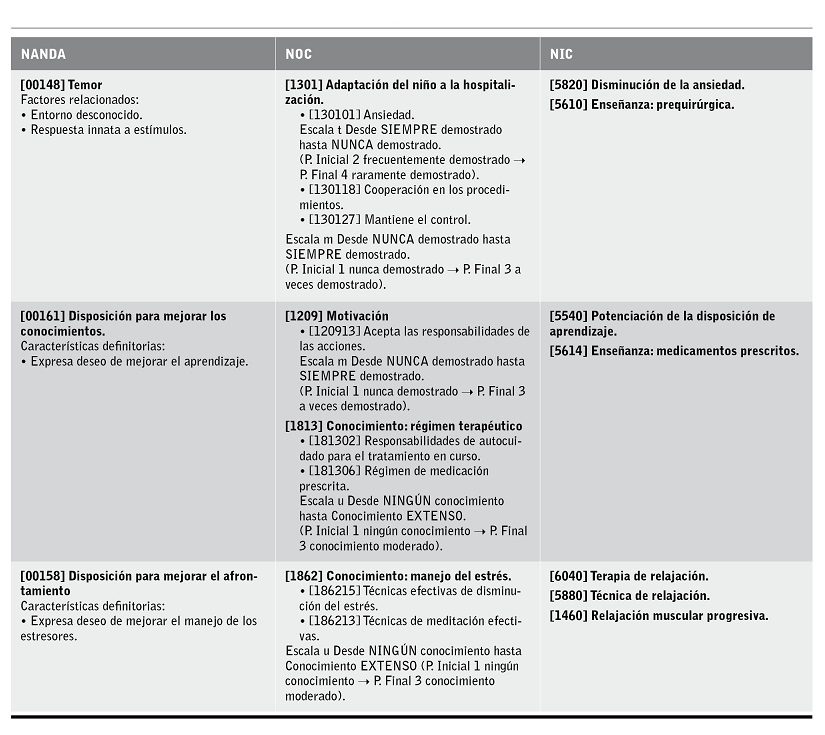 Conclusions: In view of our results we can conclude that the care plan applied to the adolescent patient was effective with respect to all the expected results (NOC).