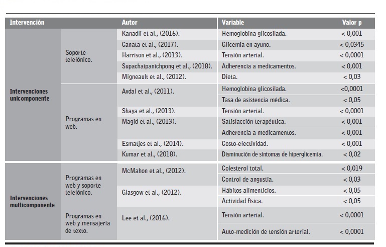 En la Tabla 2 se presentan las intervenciones estadísticamente significativas, de acuerdo con los resultados encontrados.